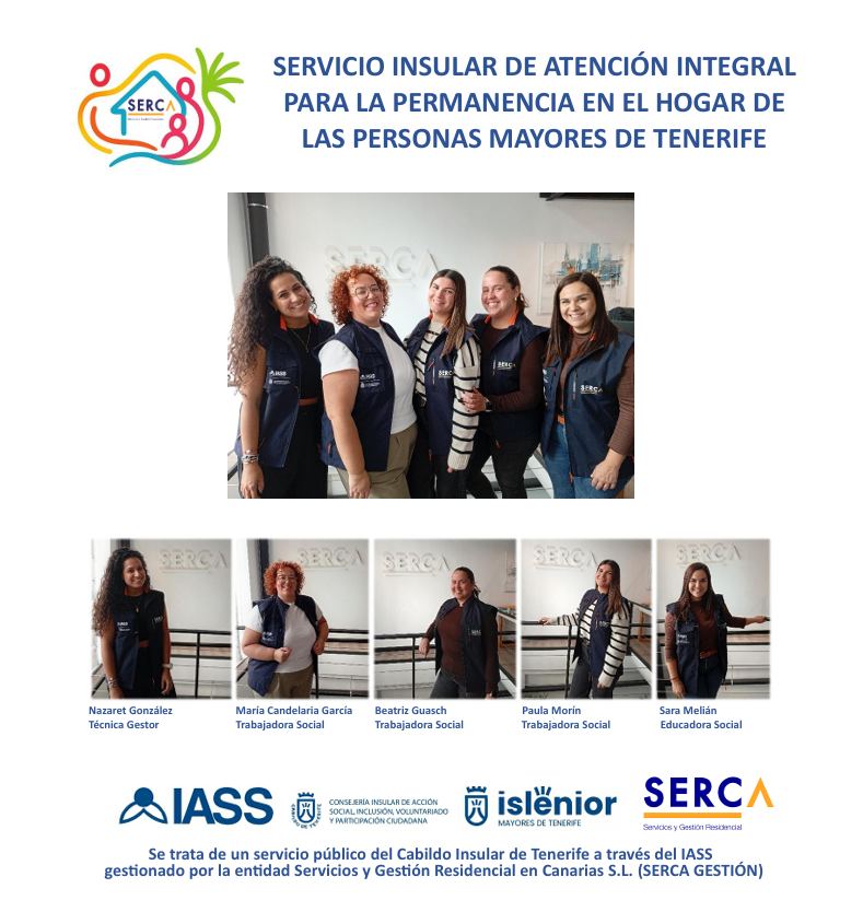 Servicios y Gestión Residencial en Canarias S.L. (SERCA GESTIÓN) ha puesto en marcha el Servicio Insular de Atención Integral para la Permanencia en el Hogar de las Personas Mayores de Tenerife, un servicio público promovido por el Cabildo Insular de Tenerife a través del Instituto Insular de Atención Social y Sociosanitaria (IASS), cuyo inicio efectivo tuvo lugar el pasado mes de diciembre.